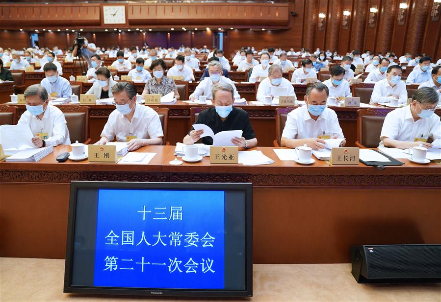 The first plenary meeting of the 21st session of the 13th National People's Congress (NPC) Standing Committee is held at the Great Hall of the People in Beijing, capital of China, Aug. 8, 2020. Li Zhanshu, chairman of the NPC Standing Committee, presided over the meeting. (Xinhua/Zhang Ling)