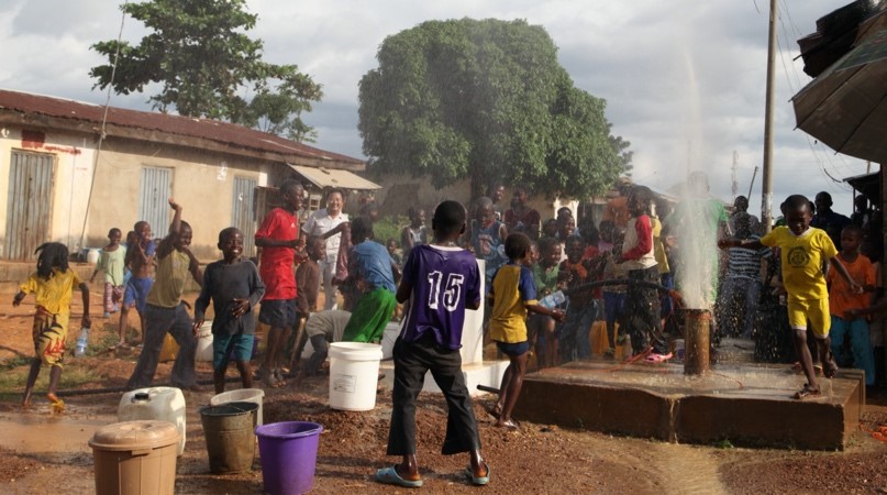 Children play around a well in Kwali, Nigeria when CGCOC employees clean the well. Photo: courtesy of the CGCOC