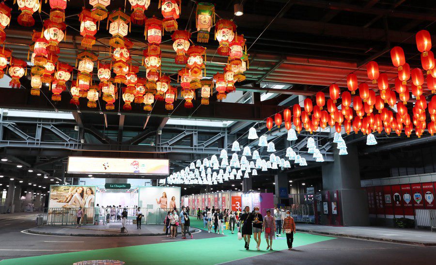 People attend a theme tour activity at the National Exhibition and Convention Center in Shanghai, east China, June 6, 2020. (Xinhua/Fang Zhe)