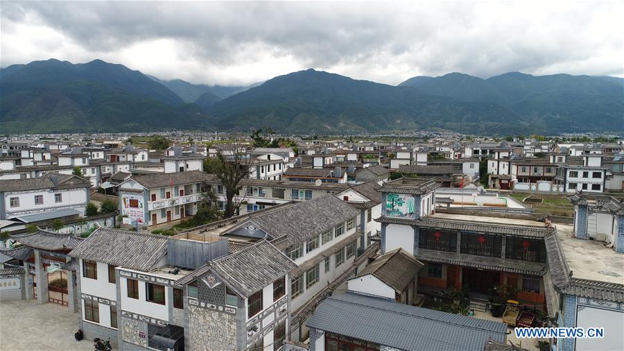 Aerial photo taken on Sept. 14, 2020 shows the view of Gusheng Village in Dali, southwest China's Yunnan Province. Gusheng Village, located by the Erhai Lake, benefits from the ecological improvement of Erhai Lake and the number of tourists increases. (Photo by Chen Xinbo/Xinhua)