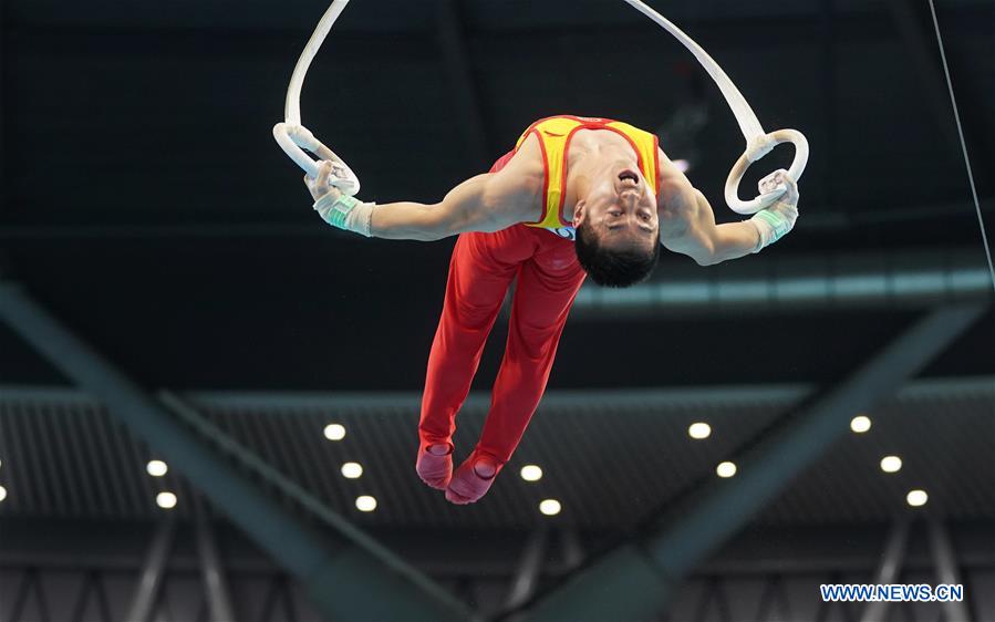 You Hao of Jiangsu competes during the men's rings final at the 2020 Chinese National Artistic Gymnastics Championships in Zhaoqing, south China's Guangdong Province, Sept. 27, 2020. (Xinhua/Cheng Min)