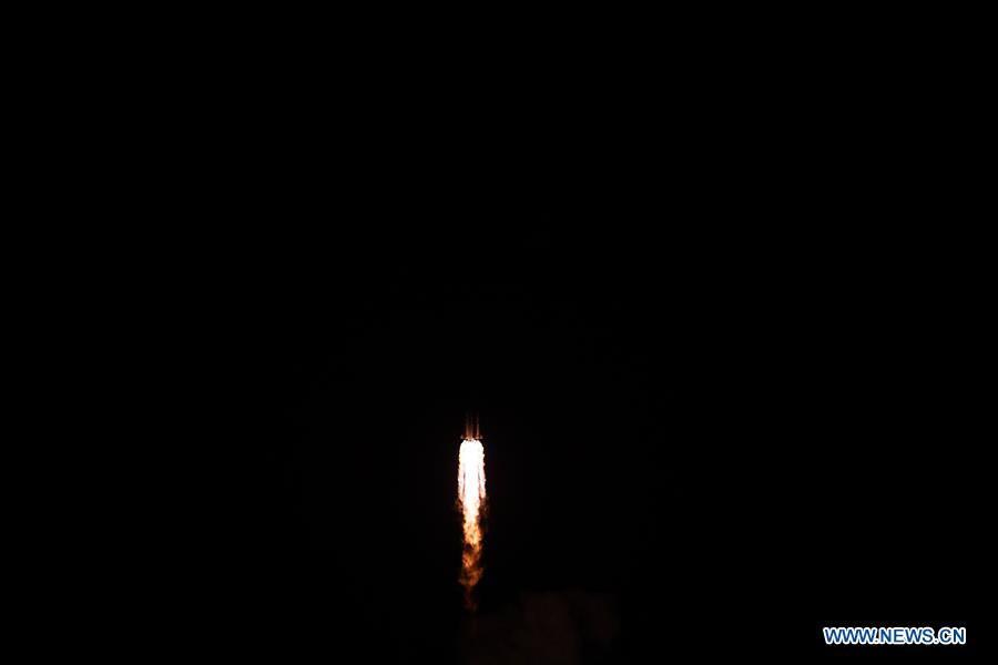 A new optical remote-sensing satellite is launched from the Xichang Satellite Launch Center, southwest China's Sichuan Province, Oct. 12, 2020. China successfully launched the satellite, Gaofen-13, by a Long March-3B carrier rocket at 12:57 a.m. on Monday (Beijing Time). This satellite will serve economic development by providing information services. (Photo by Li Xiaowei/Xinhua)
