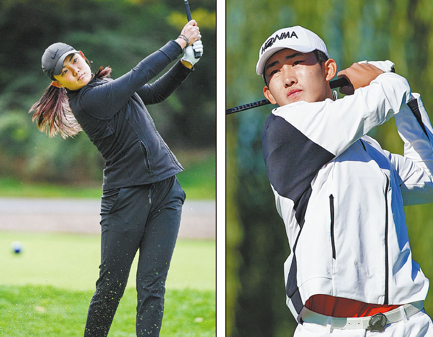 Li Jieni (left) and Peng Bo were among the field at last weekend's inaugural Sina Cup at Beijing Shadow Creek Golf Club, where young amateurs mixed it up with the pros in a Ryder Cup-style format. CHINA DAILY