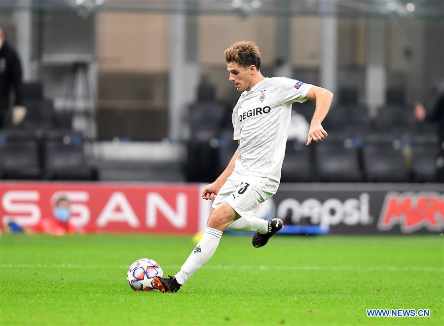 Moenchengladbach's Jonas Hofman scores during the UEFA Champions League Group B football match between FC Inter and Borussia Moenchangladbach in Milan, Italy, Oct. 21, 2020. (Xinhua)