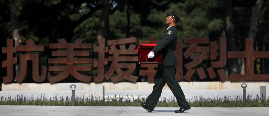 A casket containing the remains of the Chinese People's Volunteers (CPV) martyr is escorted to the CPV martyrs' cemetery in Shenyang, northeast China's Liaoning Province, Sept. 27, 2020. (Xinhua/Yao Jianfeng)