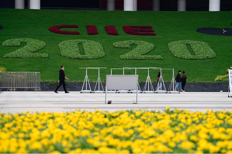 Gardeners prepare flower decorations for the upcoming 3rd China International Import Expo (CIIE) at the National Exhibition and Convention Center in Shanghai, Oct. 15. (People's Daily Online/Yang Jianzheng)