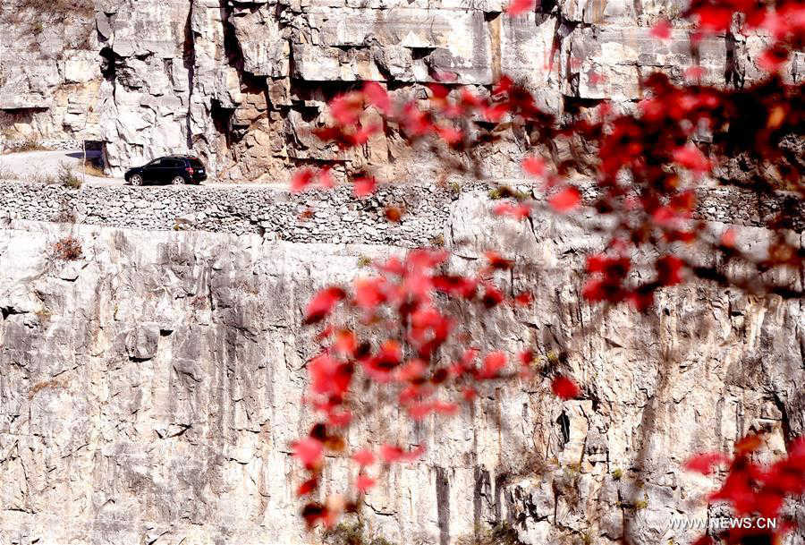 Photo taken on Oct. 22, 2020 shows the autumn scenery of Qingtianhe scenic area in Boai County of Jiaozuo City, central China's Henan Province. (Xinhua/Zhu Xiang)