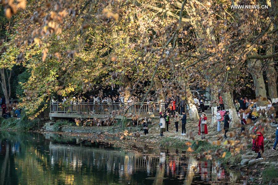 Tourists enjoy autumn scenery at Huaxi National City Wetland Park in Guiyang, capital of southwest China's Guizhou Province, Oct. 25, 2020. (Xinhua/Tao Liang)