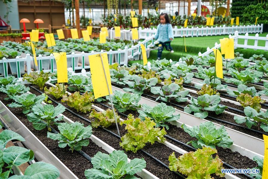 A girl visits a modern agricultural industry park in Tongshan District, Xuzhou, east China's Jiangsu Province, Oct. 27, 2020. Authorities in Tongshan District have taken steps to optimize the local agricultural sector by combining modern agriculture with urban tourism. Altogether, the district's 300-plus agritourism parks have received some four million visitors in 2019. (Xinhua/Li Bo)