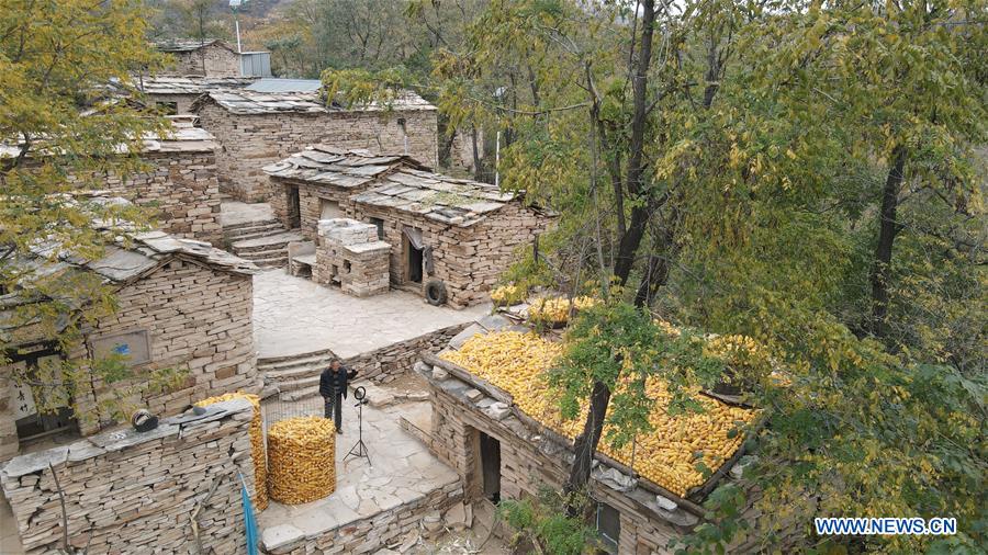 Villager Li Sanping gestures as he promotes local tourism resources in a courtyard through live streaming at Dakang Village of Chaiguan Township in Shahe City, north China's Hebei Province, Oct. 28, 2020. Dakang Village, over 1,000 meters above sea level, is located deep in the Taihang Mountains, which ranges across Beijing and the provinces of Hebei, Shanxi and Henan. Living in this almost inaccessible rural backwater, villagers were nearly cut off from the outside world. Over generations, they have tilled a few lands on mountains making little money. In recent years, all young people of the village have gone outside for work, with only a few old people left. Li Sanping is among those elders. He was once the village Party secretary, who led the village to develop. In 2018, the village began to develop special agricultural products industry and tourism, thanks to local government's preferential policies to support agriculture. Earlier this year, Li Sanping joined his son Li Qingbin's smartphone live streaming to promote the village's agricultural products, which are greatly welcomed by netizens. After his mobile phone debut, Li was deeply attracted by this new trend. With his son's help, Li registered an online live streaming account and bought some basic equipment, taking to promoting his village's tourism resources and specialities. Now, Li's every live streaming session would draw more than 2,000 viewers, making him a local online celebrity. With his efforts, the village has sold more agricultural products than ever, and saw an increasing number of tourists. (Xinhua/Mu Yu)