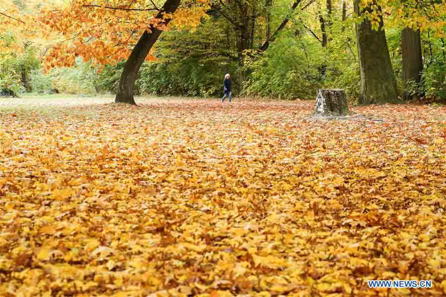 A pedestrian is seen at a park in Berlin, capital of Germany, Oct. 28, 2020. (Xinhua/Shan Yuqi)