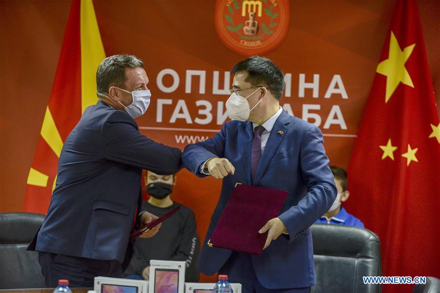 TIRANA, Oct. 29 (Xinhua) -- The Chinese Embassy in North Macedonia donated on Thursday a batch of 310 tablets to pupils in Gazi Baba, one of the municipalities that make up the capital city of Skopje, to help them have online learning.