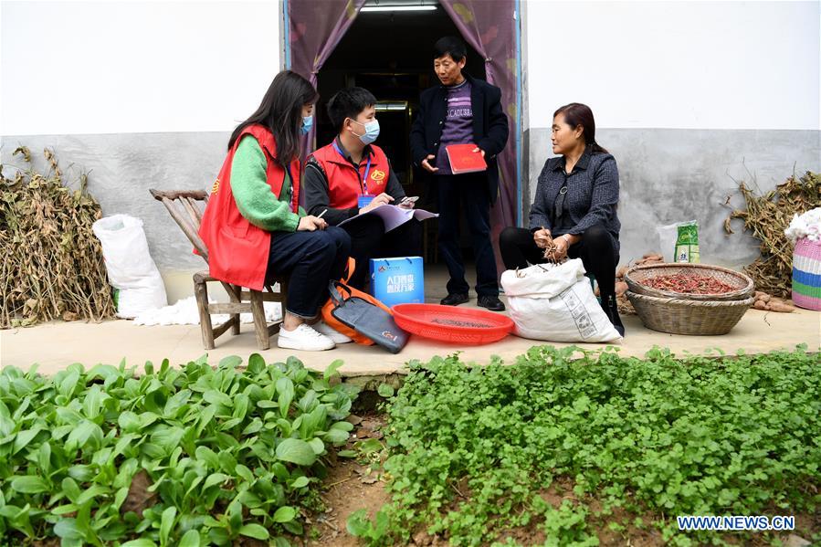 Census takers register residents' information of a household in Zipeng Town of Feixi County, Hefei City of east China's Anhui Province, Nov. 1, 2020. China on Sunday started its seventh national population count, with about 7 million census takers going door to door to document demographic changes in the world's most populous country. (Xinhua/Liu Junxi)
