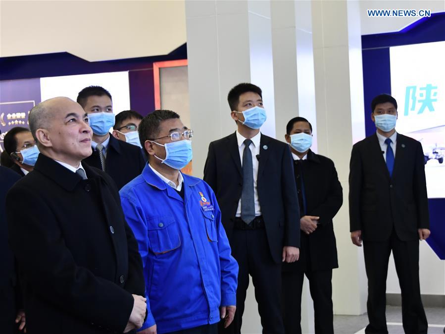 Cambodian King Norodom Sihamoni visits Shaanxi Automobile Holding Group in northwest China's Shaanxi Province, Nov. 1, 2020. Sihamoni paid a visit to Shaanxi from Oct. 30 to Nov. 1. (Xinhua/Cai Xinyi)