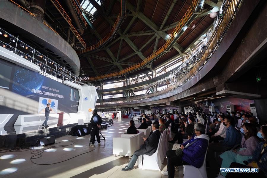 Guests attend a themed forum during the 2020 China Science Fiction Conference in Beijing, capital of China, Nov. 11, 2020. The fifth China Science Fiction Conference was opened here on Sunday. Jointly organized by the China Association for Science and Technology (CAST) and the Beijing municipal government, this year's conference features both online and offline events, including an opening ceremony, forums and exhibitions. (Xinhua/Ju Huanzong)