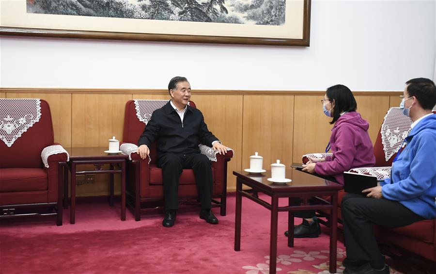 Wang Yang answers the census inquiries while taking part in China's seventh population census in the Zhongnanhai leadership compound in Beijing, capital of China, Nov. 2, 2020. China on Sunday started its seventh national population count. (Xinhua/Xie Huanchi)