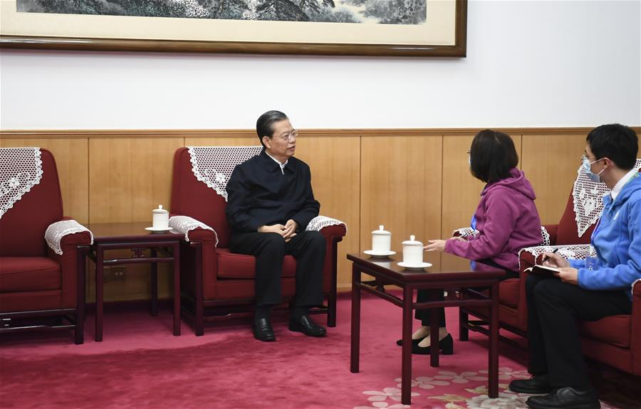 Zhao Leji answers the census inquiries while taking part in China's seventh population census in the Zhongnanhai leadership compound in Beijing, capital of China, Nov. 2, 2020. China on Sunday started its seventh national population count. (Xinhua/Xie Huanchi)