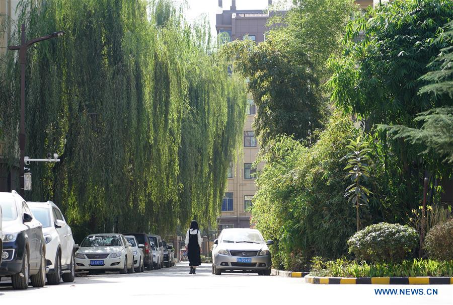 A woman walks on the renovated road in a community in Yanta District of Xi'an, northwest China's Shaanxi Province, Nov. 2, 2020. A renovation project for an old residential community completed recently after nearly one year of construction in Yanta District of Xi'an to improve local living environment. (Xinhua/Shao Rui)