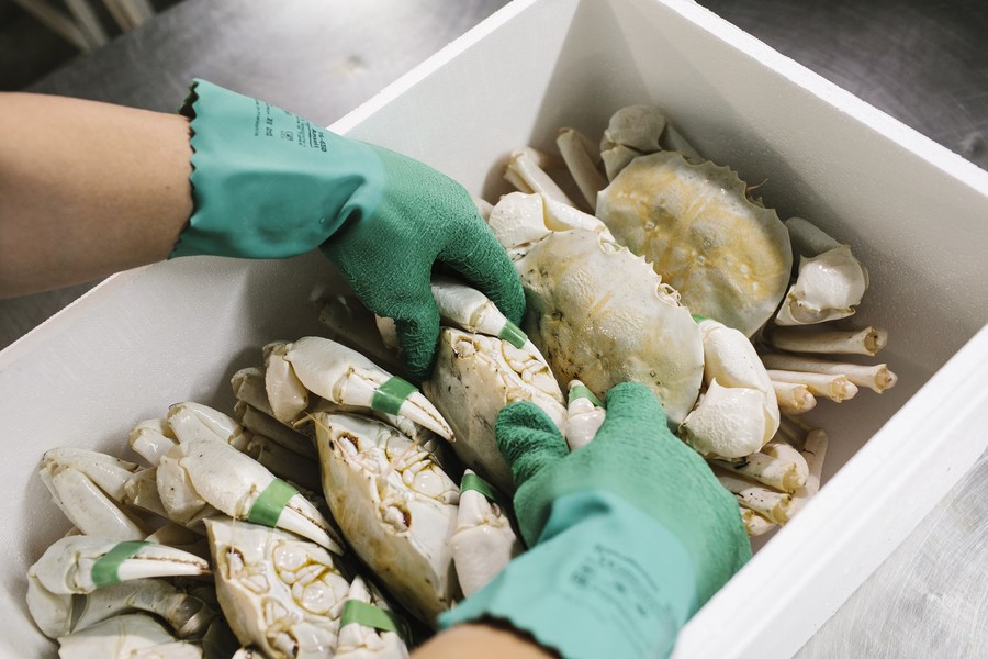 Photo taken on June 30, 2020 shows crystal crabs at Oceanic Trading company in Western Australia, Australia. (Photo by Annelize Barron/Xinhua)