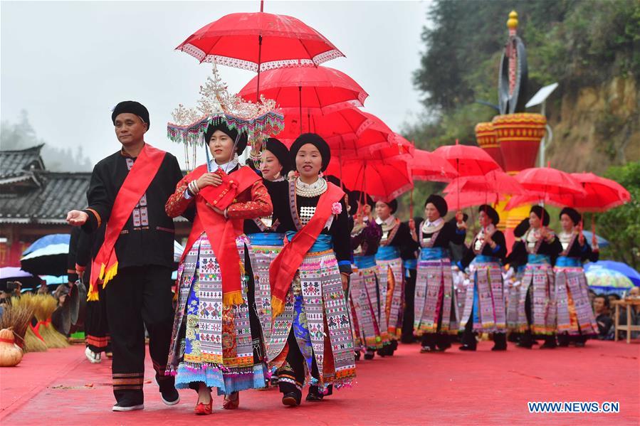 People of the Yao ethnic group perform during the folk Panwang Festival as well as a harvest festival in Rongshui Miao Autonomous County, south China's Guangxi Zhuang Autonomous Region, Nov. 1, 2020. (Xinhua/Huang Xiaobang)