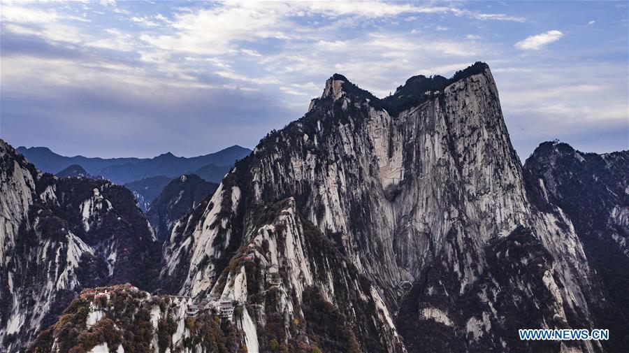Aerial photo taken on Nov. 3, 2020 shows a view of Mount Huashan in northwest China's Shaanxi Province. (Xinhua/Tao Ming)