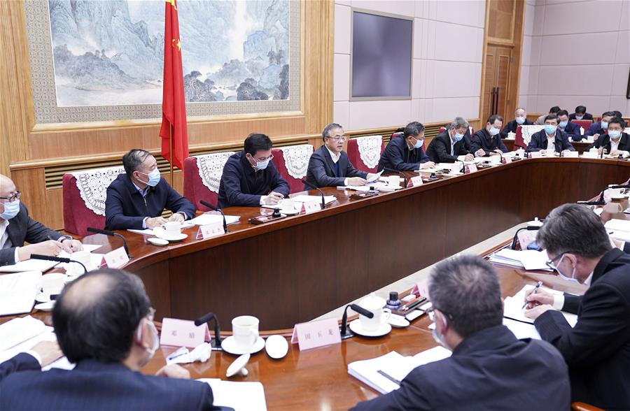 Chinese Vice Premier Hu Chunhua, also a member of the Political Bureau of the Communist Party of China Central Committee, presides over a meeting on battling against smuggling nationwide in Beijing, capital of China, Nov. 3, 2020. (Xinhua/Yin Bogu)