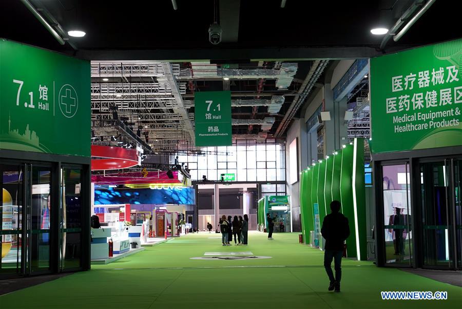 Photo taken on Nov. 4, 2020 shows the interior of the National Exhibition and Convention Center (Shanghai), the main venue for the 3rd China International Import Expo (CIIE), in east China's Shanghai. The opening ceremony of the 3rd CIIE and the Hongqiao International Economic Forum will be held on Wednesday in Shanghai. (Xinhua/Liu Ying)