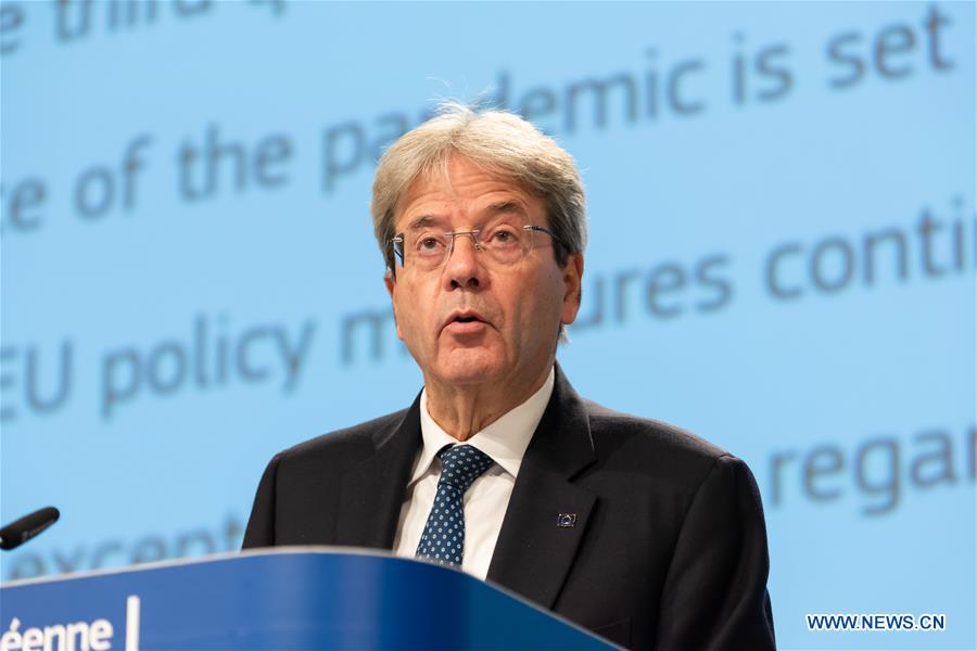 Paolo Gentiloni, European Commissioner for Economy, speaks at a press conference in Brussels, Belgium, Nov. 5, 2020. The European Union (EU) on Thursday ditched hope of a quick turnaround for European economies, predicting that pre-pandemic levels will only be reached in 2023. (European Union/Handout via Xinhua)
