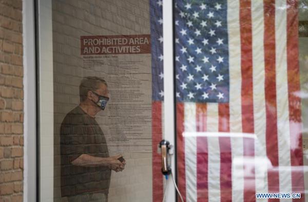 A man waits to vote during the in-person early voting for U.S. president in Alexandria, Virginia, the United States, on Sept. 18, 2020. (Xinhua/Liu Jie)