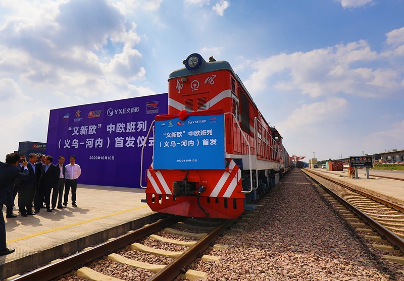 A freight train departs from Yiwu, east China's Zhejiang province for Hanoi, capital of Vietnam, Oct. 10. Photo by Gong Xianming/People's Daily