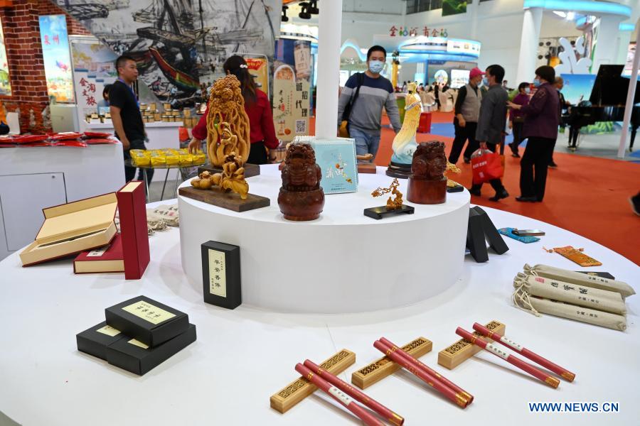 Artifacts are displayed during the 6th Maritime Silk Road (Fuzhou) International Tourism Festival in Fuzhou, southeast China's Fujian Province, Nov. 27, 2020. The 6th Maritime Silk Road (Fuzhou) International Tourism Festival kicked off in Fuzhou on Friday. (Xinhua/Lin Shanchuan)