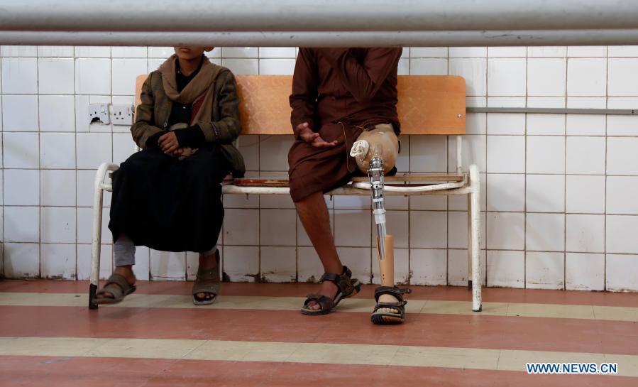A man who lost his left leg in an explosion sits on the chair at the rehabilitation center in Sanaa, Yemen, on Dec. 2, 2020. The world observes the International Day of Persons with Disabilities on Dec. 3. (Photo by Mohammed Mohammed/Xinhua)