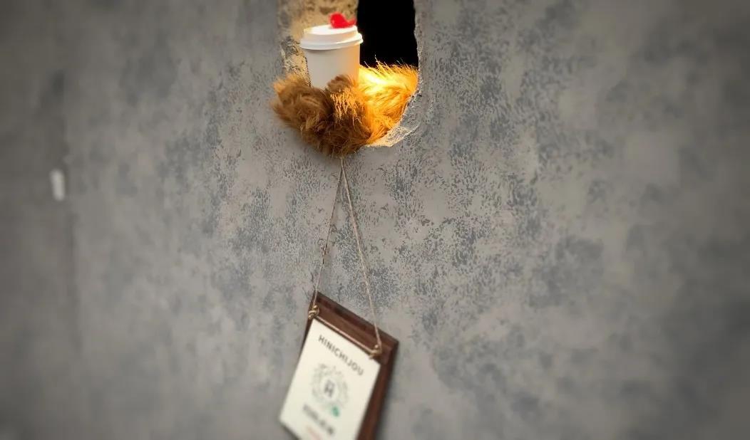 On Shanghai’s Yongkang Road, a coffee shop named HINICHIJOU has gained popularity because of the unique service it provides- letting a brown fluffy bear claw serve coffee.