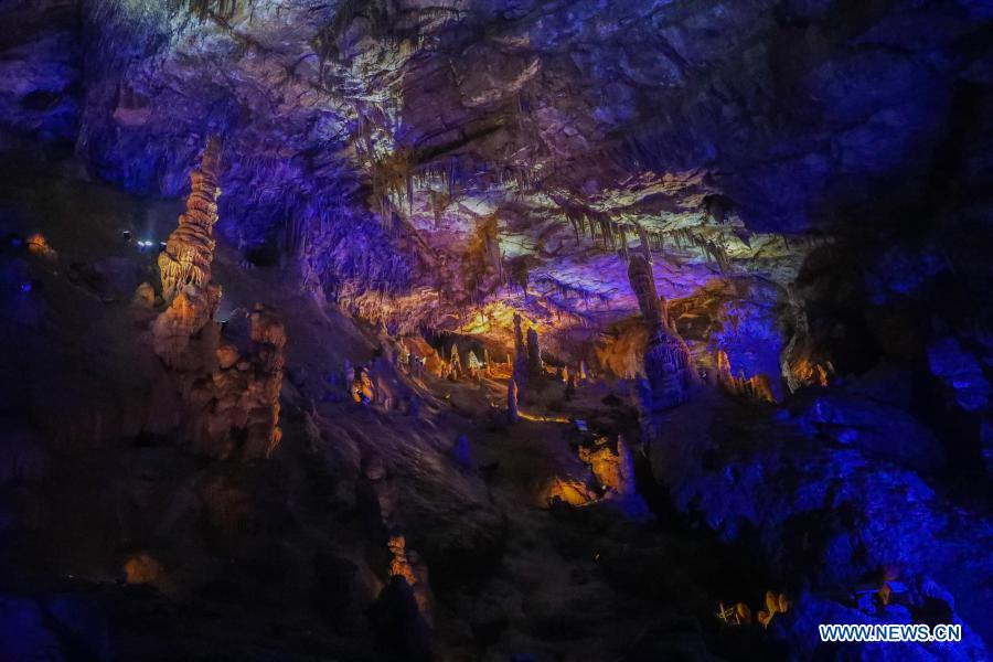Photo taken on Dec. 3, 2020 shows the inside view of Wanxiang karst cave in Hanwang Township of Longnan City, northwest China's Gansu Province. (Xinhua/Ma Xiping)