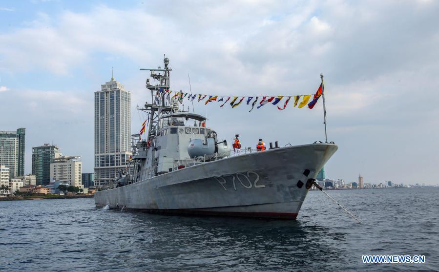 The Sri Lanka Navy holds a parade in the seas of Colombo, Sri Lanka on Dec. 9, 2020, as part of its 70th anniversary celebrations. Celebrations for the Sri Lanka Navy's 70th anniversary were scaled down this year amid the COVID-19 pandemic. Arrangements have been made to bring ships of the Sri Lanka Navy to the anchorage off the Galle Face Green, a popular beach in Colombo, from Dec. 9 to 13, with a view to reach the general public with better awareness of the Navy. (Photo by Ajith Perera/Xinhua)