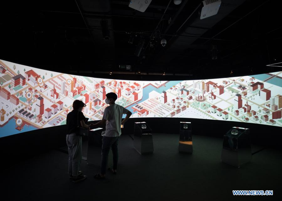Tourists visit the "Awakening Bangkok" lighting installation fest in Bangkok, Thailand, Dec. 15, 2020. (Xinhua/Zhang Keren)