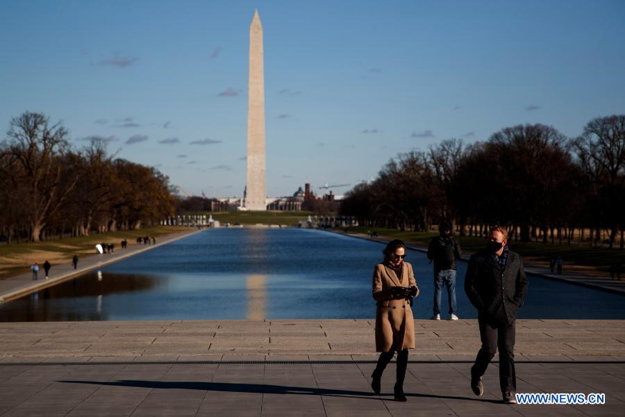 People walk on the National Mall in Washington, D.C., the United States, on Dec. 17, 2020. The total number of COVID-19 cases in the United States topped 17 million on Thursday, according to the Center for Systems Science and Engineering (CSSE) at Johns Hopkins University. U.S. COVID-19 case count rose to 17,000,408, with a total of 307,770 deaths, as of 10:27 a.m. local time (1527 GMT), according to the CSSE tally. (Photo by Ting Shen/Xinhua)