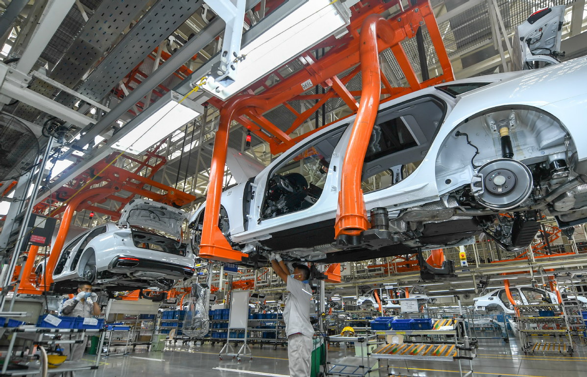Employees work at the production line of FAW-Volkswagen in Changchun, Jilin province. [Photo/Xinhua]