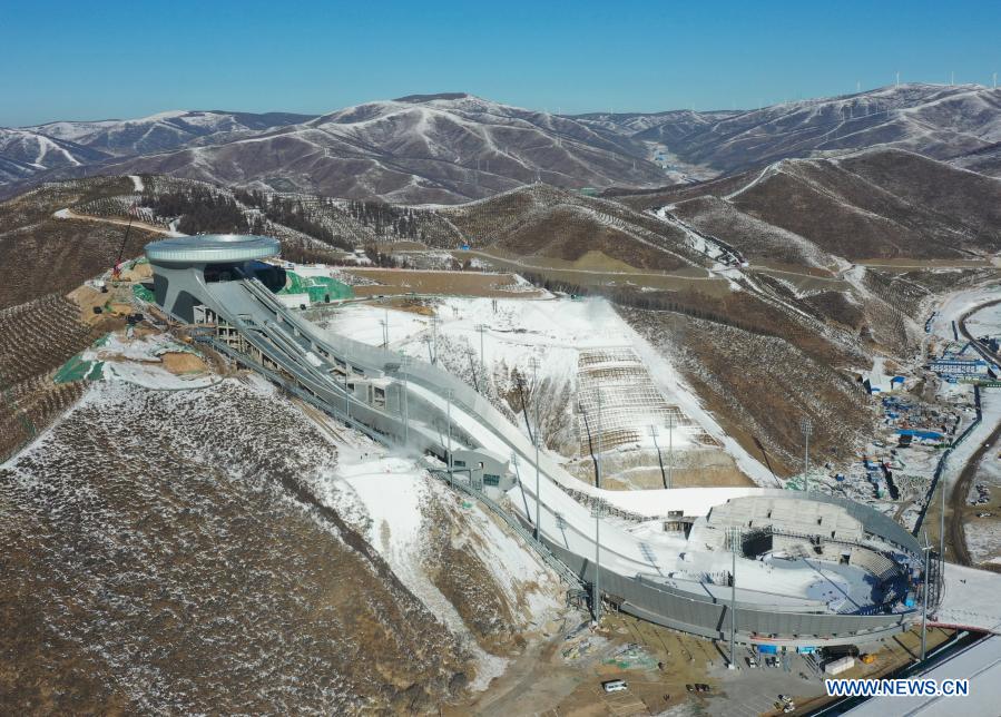 Aerial photo taken on Dec. 21, 2020 shows the National Ski Jumping Center in Chongli District of Zhangjiakou City, north China's Hebei Province. (Xinhua/Yang Shiyao)