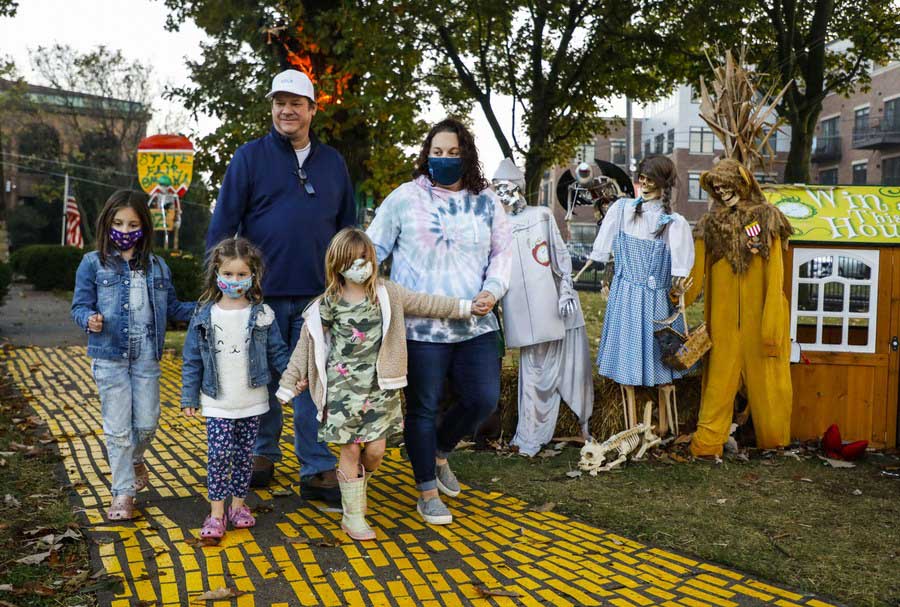 Visitors walk through the Wizard of Oz themed display at the Highwood Skeleton Invasion in Highwood, Illinois, the United States, on Oct. 22, 2020. (Photo by Joel Lerner/Xinhua)