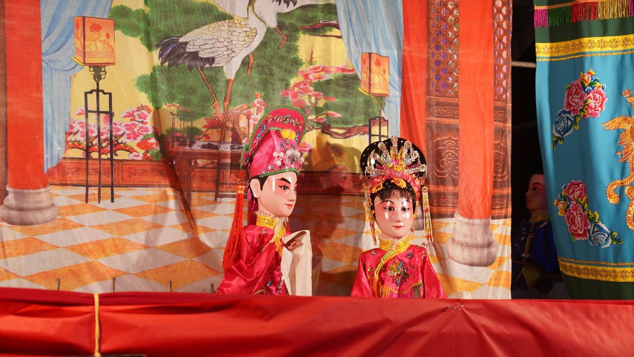 On the stage, Gongzai puppet artists are depicting lives using lifelike puppets, accompanied by unique tunes from traditional instruments.