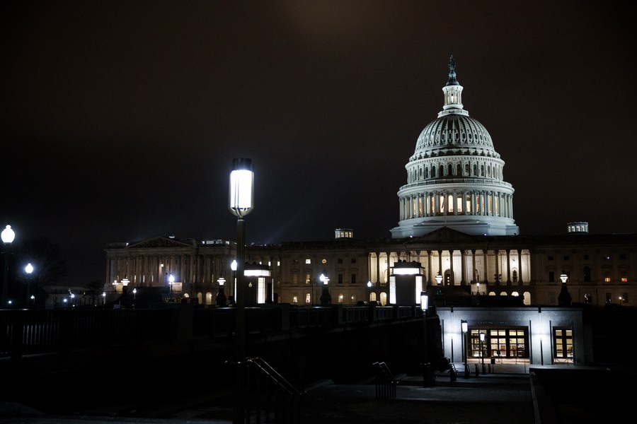 Photo taken on Dec. 20, 2020 shows the U.S. Capitol building in Washington, D.C., the United States. (Photo by Ting Shen/Xinhua)