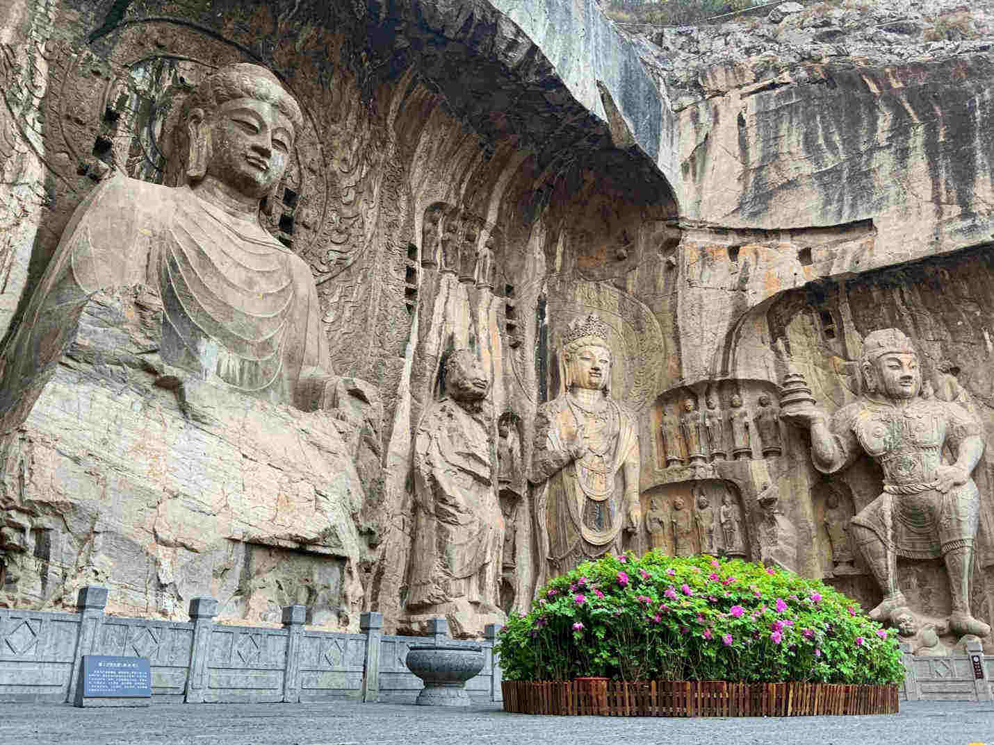 The Big Vairocana (left) is the largest Buddha statue at the Longmen Grottoes. The statue is 17.14m high and has 2m long ears. (People’s Daily Online/Kou Jie)