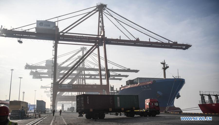 NANNING, Dec. 28 (Xinhua) -- Beibu Gulf Port in south China's Guangxi Zhuang Autonomous Region saw its annual container throughput surpass 5 million twenty-foot equivalent units (TEUs) for the first time on Monday.