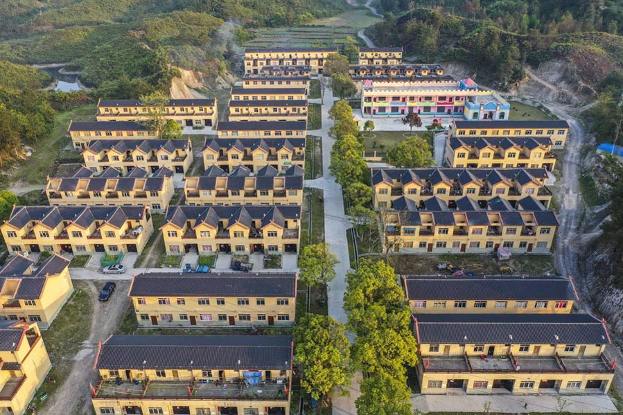 Aerial photo taken on April 29, 2020 shows a view of a poverty-relief relocation site for the Baiku Yao People in Nandan County, south China's Guangxi Zhuang Autonomous Region. (Xinhua/Cao Yiming)