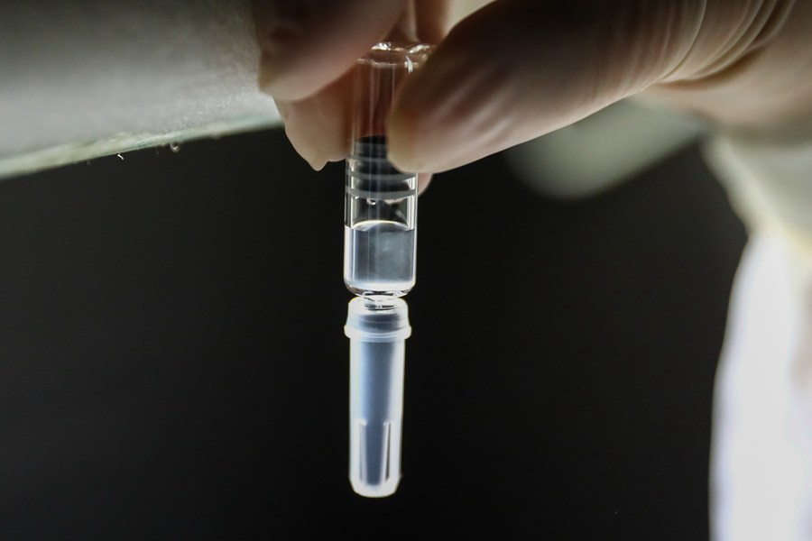 A staff member checks a COVID-19 inactivated vaccine product at a packaging plant of the Beijing Biological Products Institute Co., Ltd. in Beijing, capital of China, Dec. 25, 2020. (Xinhua/Zhang Yuwei)