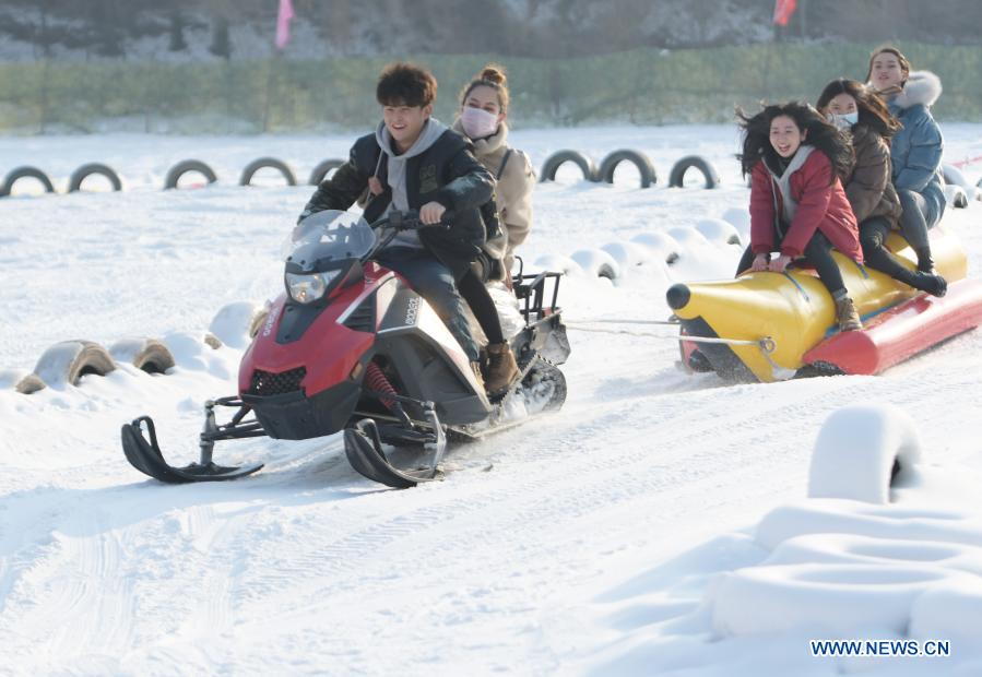 Tourists have fun at a scenic spot in Nanlong Town, Linxia City, Linxia Hui Autonomous Prefecture of northwest China's Gansu Province, Jan. 1, 2021. (Photo by Shi Youdong/Xinhua)