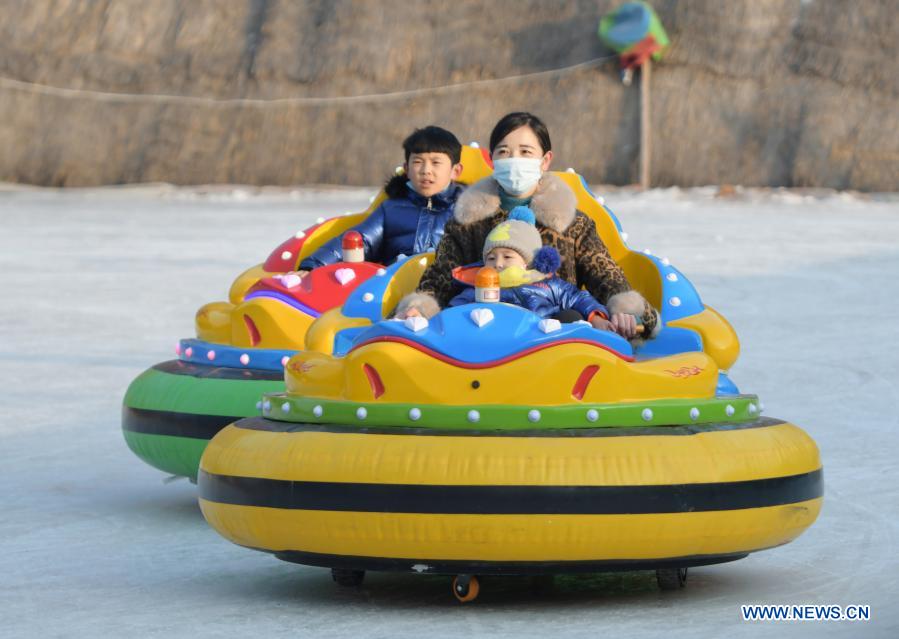 Tourists have fun at a scenic spot in Nanlong Town, Linxia City, Linxia Hui Autonomous Prefecture of northwest China's Gansu Province, Jan. 1, 2021. (Photo by Shi Youdong/Xinhua)