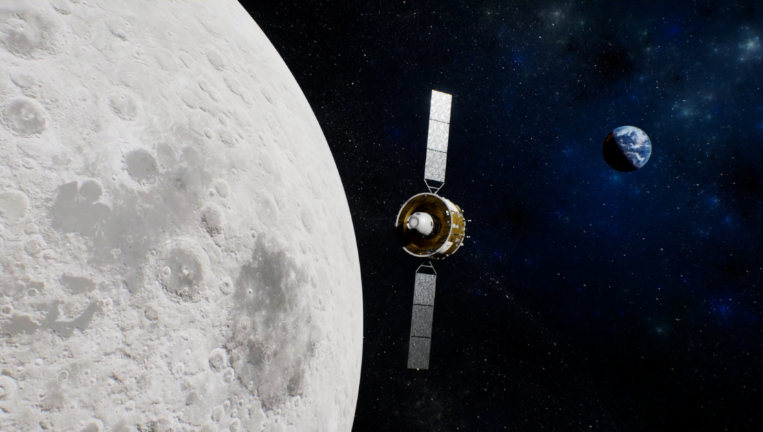 An illustration shows the orbital transfer injection by Chang'e 5's orbiter-reentry capsule combination. [Photo provided to chinadaily.com.cn]