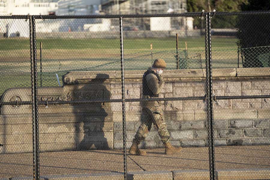 A security staff member is seen near the U.S. Capitol building a day after supporters of U.S. President Donald Trump stormed it in Washington, D.C., the United States, Jan. 7, 2021. (Xinhua/Liu Jie)